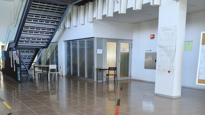 A secretaria da escola localiza-se no hall de entrada da escola sede, Escola Canto da Maia.